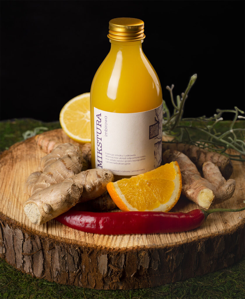 Mikstura imbirowa dla restauracji, hoteli i barów. Wzbogać swoje menu o zdrowe i innowacyjne napoje przyrządzane przez renomowanego szefa kuchni. Doskonały dodatek do napojów, koktajli, shotów zdrowotnych i herbat.